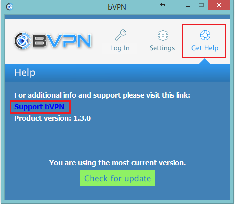 Если вам нужна помощь, нажмите на «Получить помощь»,затем «Поддержка b.VPN»: