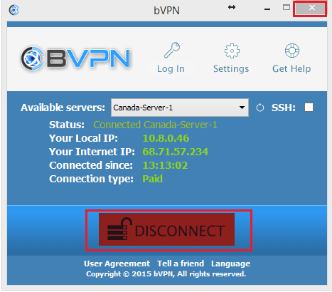 Теперь вы должны увидеть срок действия подписки. Нажмите на иконку «BVPN», чтобы вернуться к главному окну.